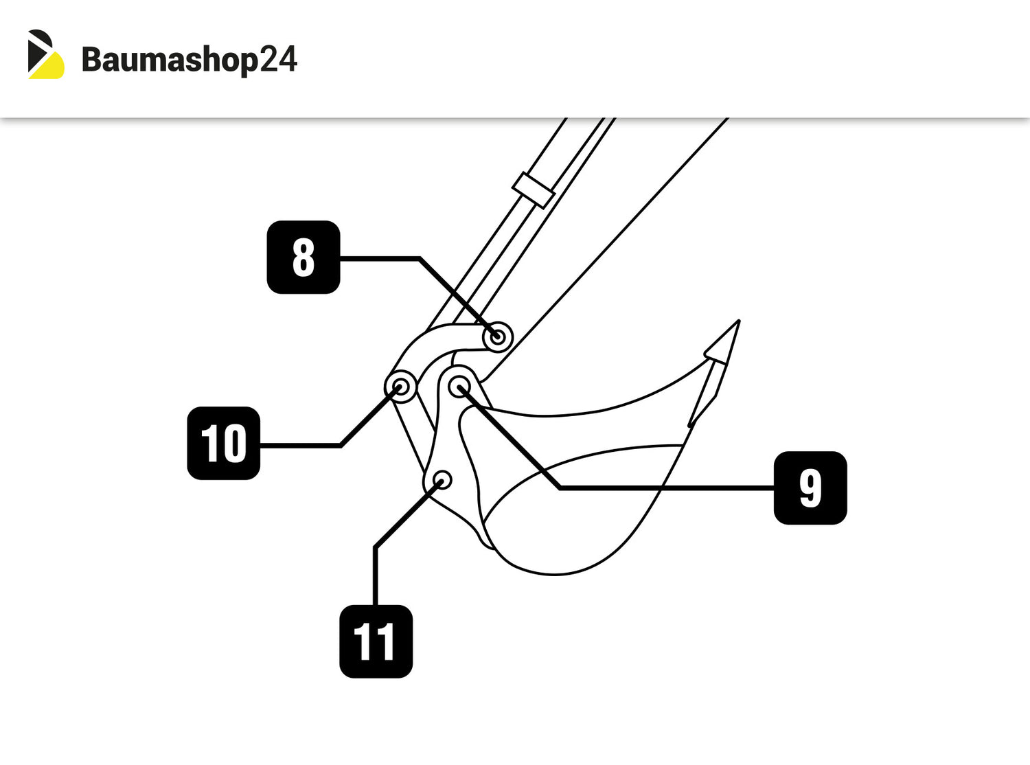 - 1x Bolzen im Löffelverbindungsstück (Zylinderseitig)